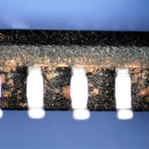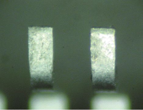 Nie jest to metoda wykrywania podróbek, ponieważ utlenianie zachodzi naturalnie; jednakże jest to istotny problem dla funkcjonalności i jest szczególnie rozpowszechniony w gorącym, wilgotnym klimacie, takim jak Azja Południowo-Wschodnia i południowe stany Ameryki Północnej. Wspólna norma J-STD-002 definiuje metody testowania i akceptuje / odrzuca kryteria dla urządzeń do montażu otworowego, powierzchniowego i BGA. W przypadku urządzeń do montażu powierzchniowego innych niż BGA zastosowano funkcję dip-and-look, a test „płytek ceramicznych” dla urządzeń BGA został niedawno włączony do naszego zestawu usług. Urządzenia, które są dostarczane w nieodpowiednich opakowaniach, dopuszczalnych opakowaniach, ale mają ponad rok, lub zanieczyszczenia wyświetlacza na kołkach są zalecane do testowania lutowności.